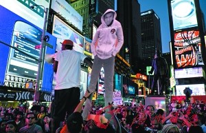 14日,纽约,千名群众游行抗议对齐默尔曼的判决。
