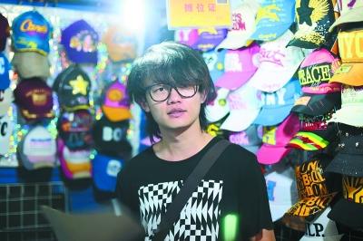 丁克森在王家湾夜市卖帽子和眼镜,他称这是“曲线救国”