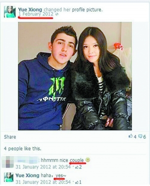 熊小玥与外籍帅哥合照。