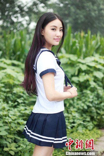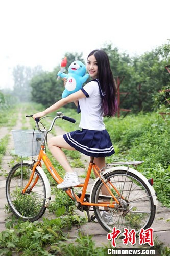 中新网7月19日电 近日,北京电影学院表演系吕艺瓷,身穿学生制服,与2013全运会吉祥物“宁宁”拍摄写真,短裙可爱,玉腿迷人,清纯靓丽。吕艺瓷骑着自行车与“宁宁”一同郊游,成为一道美丽的风景线。