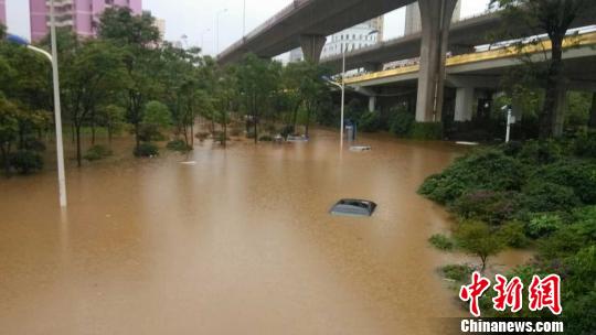 图为云南昆明金星立交桥下面淹水严重。 余世刚 摄