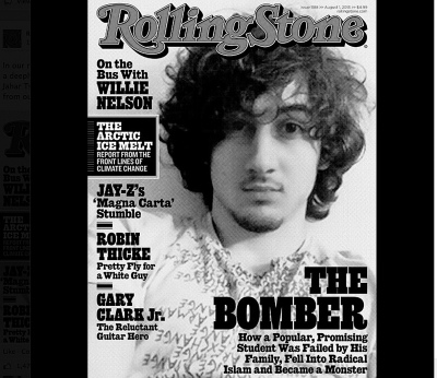 该杂志8月号选用了19岁的波士顿爆炸案嫌疑人焦哈尔·察尔纳耶夫作为封面人物,封面上的他卷发蓬松、眼神慵懒,看起来更像个摇滚明星,而不是那个惨案的制造者。