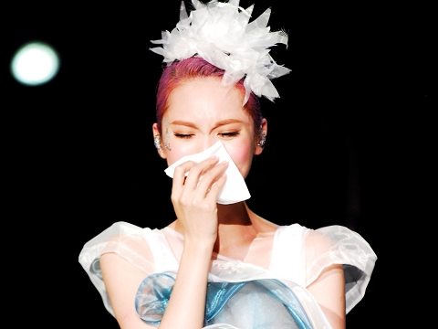 据悉杨丞琳于17号开始持续3天高烧39度,虽然紧急入院打点滴,但发烧不退,状况时好时坏让工作人员非常担心。由于演唱会最终桥段她需潜进注满冷水的两米深水缸憋气20秒,这次紧急安排瓦斯炉现场烧热水,让她笑说:“从潜水变泡温泉,蛮舒服的。”前晚她一连献唱超过27首歌曲,演唱《匿名的好友》时却突然痛哭失声。