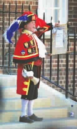 ■ 一名身着传统服装的王室工作人员,在医院门前高声宣布“王室宝宝”诞生
