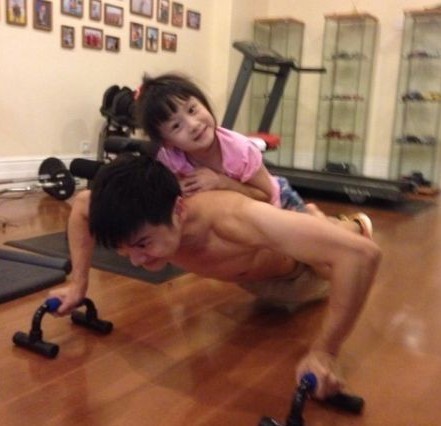 因《中国星跳跃》的热播让明星教头田亮再度成为了众人关注的对象,7月22日,田亮通过微博晒和女儿的照片,照片中的田亮赤裸上身,背上背着五岁的漂亮女儿田心仪正在做腹肌练习,看上去田亮非常努力的在完成此项任务。随即田亮在微博中无奈的感慨,称:“这年头当爹不容易,感觉就要被玩废了。”