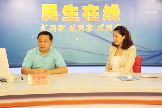 青岛市林业局党委委员、副局长高愈琛(左一)与网民交流 (周琦 摄)