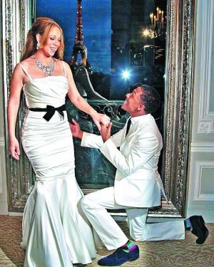 玛丽亚·凯莉的婚礼年年有新意,去年在浪漫之都巴黎(左图),今年则在加州迪士尼乐园(上图)。