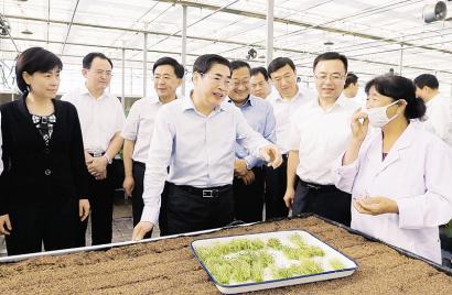 7月16日,山西省委书记袁纯清在左云县京奥农业科技有限公司调研马铃薯脱毒优种繁育情况。 记者 任灵杰摄