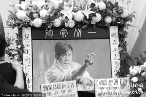 刘家良遗孀翁静晶此番以师母身份,在武馆布置的灵堂上,联同刘家良的徒子徒孙合照。灵堂布置以白色为主,布满鲜花,刘家良遗照是《醉马骝》中的功夫造型。灵堂横匾是“一代宗师”,两旁挽联是洪拳口诀“刚柔逼直分定寸 提留运制订乾坤”。当天,三只孝狮与九大门派代表以九只素狮为刘家良送行的场面,是半世纪以来的最大阵仗,也是武术界对刘家良最崇高的敬礼。