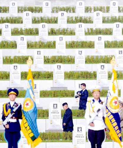 27日平壤将纪念朝鲜战争停战60周年。图为金正恩25日出席位于平壤北部的“祖国解放战争参战烈士陵园”揭幕仪式。