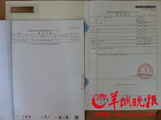 记者随后以市民的身份将蓝白罐送至国家化妆品质量监督检验中心(广州)处,同样,检测结果显示——蓝色瓶和白色瓶产品汞超标高达1.2万ppm,结论是“不符合《化妆品卫生规范》(第2007年版)要求”。