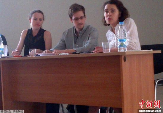 美国“棱镜”监控计划泄密者爱德华•斯诺登于莫斯科时间7月12日在莫斯科谢列梅捷沃机场与多家人权机构代表人士举行会谈。