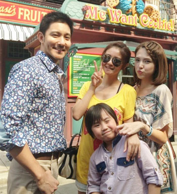 为彻底赶走厄运,她去新加坡玩,高呼“找幸福”,在环球影城巧遇在《下一站,幸福》中演她儿子的小小彬;紧接着到天津和陈小春拍电影《我的第四个老公》,35℃气温逼人,她却对自己喊话“正能量万岁”。