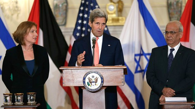 以色列和巴勒斯坦的谈判代表在克里国务卿邀请下双双抵达华盛顿,恢复了中断已久的和平谈判。
