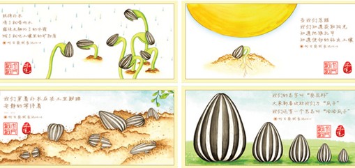 1999年9月,洽洽首次在洽洽香瓜子包装内投放文化卡——《宋词篇》,由漫画家蔡志忠创作。洽洽方面介绍,“那时,正值洽洽香瓜子上市,为更好地与消费者进行沟通,在美食之外为消费者提供轻松快乐的休闲乐趣,《宋词篇》得以问世。”用漫画形式表现古典诗词,这如同在厚重的传统文化中平添了一抹幽默趣味,当时就引发了广大消费者的追捧,据称现在成套卡片已被炒到200元一套。而就是这套卡片也开启了洽洽文化卡的“快乐”之旅。