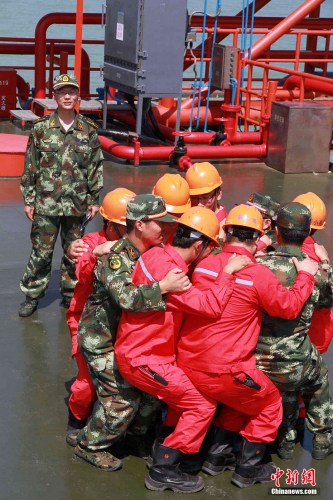 中新网东营7月31日电 (梁犇)7月31日,山东省东营市边防支队的国家二级心理咨询师-王晓龙,正在渤海埕岛30A海上作业平台上组织工人们进行团体心理行为训练。东营近海分布着有人作业平台达30余个。平台工人由于常年在狭小的空间里生活工作,身心健康不免受到影响。为此,东营市边防支队船艇大队在海上巡逻间隙,组织心理咨询师上平台开展心灵关怀活动,帮助工人解答心理问题。另外,利用海豹艇反应灵敏速度快的优势,变接警电话为求助热线,主动帮助油田生产单位转运人员、零配件、物资给养等,被誉为“及时雨”、“绿色信使”。