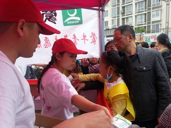 “有困难找带红帽子的蒙牛志愿者”这是当时在雅安第二医院流行的一句话。雅安地震的第二天,蒙牛第一批志愿者深入灾区,被调派到第二医院协助医生救治伤患。在这里出现了用手电筒照亮的手术台的“手电筒卫士”;用肩膀搬运救灾物资的“肩膀哥”,他们都是“带红帽子”的蒙牛志愿者。