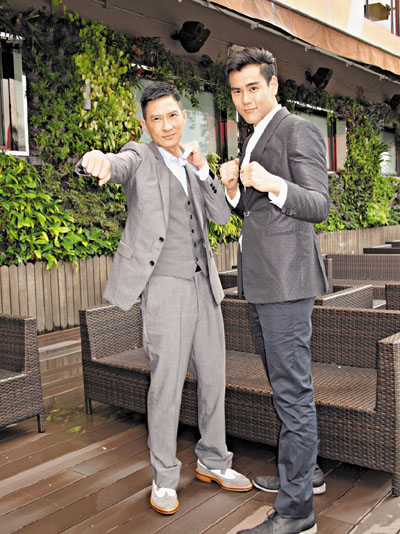 中新网8月2日电 据香港《文汇报》消息,张家辉和彭于晏日前为新戏《激战》接受访问,张家辉重提当日为练肌肉的辛酸史,扬言以后都不会再拍同类型的电影,比家辉年轻的彭于晏都笑言顶不住,又说戏中与家辉有吻戏,更提议下次合作可以演同志。