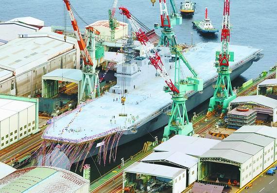 8月6日,日本海上自卫队“出云”号直升机航空母舰在神奈川县横滨市举行下水仪式。