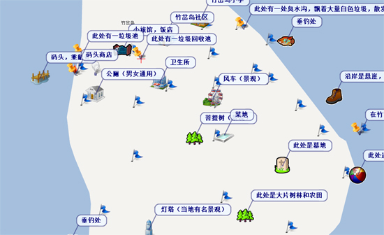 不过,记者了解到,队员们在活动的开展中慢慢发现,竹岔岛并没有想象中那么“美好”,反而存在着很多值得人们思考的问题。队员们在岛上发现了不少垃圾点,但是岛上的垃圾桶却寥寥无几,散落在比较偏僻的角落。东部沿岸除了浒苔,还有大片的啤酒瓶和泡沫塑料等垃圾。这些垃圾无人处理,散落在小岛上,十分影响岛的整体风貌。岛上居民告诉队员,竹岔岛并没有完善的垃圾处理系统,污染问题一直得不到解决。为此,中国海洋大学三下乡的同学们制作了一张竹岔岛的定位地图。