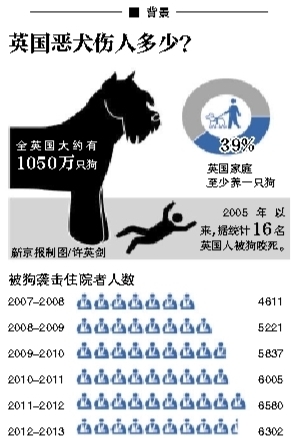 据《泰晤士报》报道,在英国,每年有21万人被恶犬攻击,而据英国国家医疗机构披露,英国每年因被犬类攻击受伤住院者达6000多人。