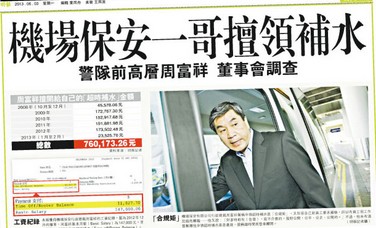 香港《明报》于6月初独家报道,周富祥涉嫌违规申领逾76万元(港币 下同)超时补水;此外,曾多次替周富祥私人物业装修的装修公司“基业”,于周富祥出任机保“一哥”期间,投得机保逾八成装修工程合约,涉款逾2330万元,被质疑有利益冲突。