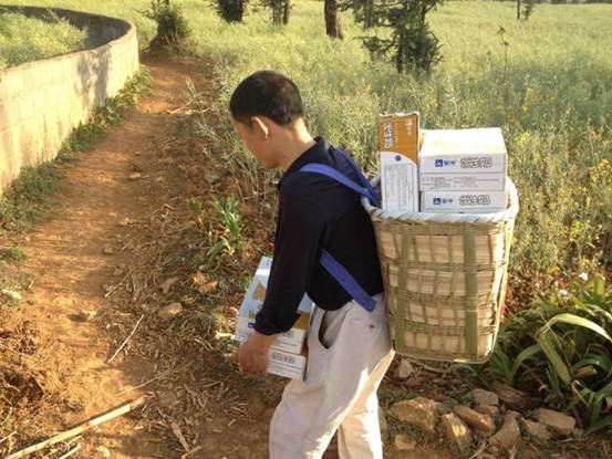 200ml的常温学生奶多重?206g。那12箱呢?一般人可能很少关心这样的问题,但是苏钏知道答案。苏钏是销售系统云贵广大区的一名学生奶项目专员,运送学生奶到山区就是他工作的一部分。配送学生奶原本不是件难事,只要路好走,一切都好解决,但放到山区,还真的成为一件不容易的事。为了将学生奶及时送到,通常都需要在盘山路上行车数十个小时,遇到山路难走,车上不去,配送师傅们就用背篓背上去。“没什么辛苦不辛苦,这是分内的工作。”谈到牛奶运送的艰辛,苏钏这样回答。