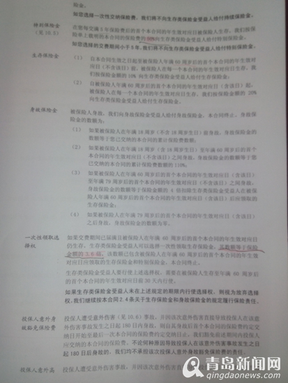 青岛新闻网讯 投资理财“以钱养钱”,一直是许多人理想的生财之道,但是“富贵险中求”的俗语也有一定道理,现今市面上的理财方法众多,哪条路才是既稳妥又有利的生财妙计呢,不少人在寻找此道的路上遇到了一块块“绊脚石”,而被欺蒙者中不乏老人与女性。近日,岛城市民王女士(化名)便在购买理财产品时,自称被泰康人寿的业务员所骗,栽了大跟头。那么,一份短期保险如何在两年内,突然变成了“终身性保险”呢,本