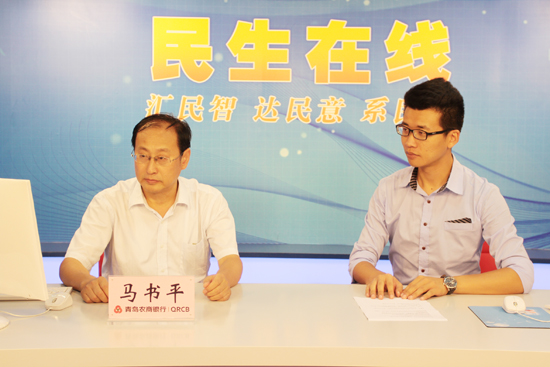 青岛农商银行副行长马书平(左一)与网民交流 (周琦 摄)