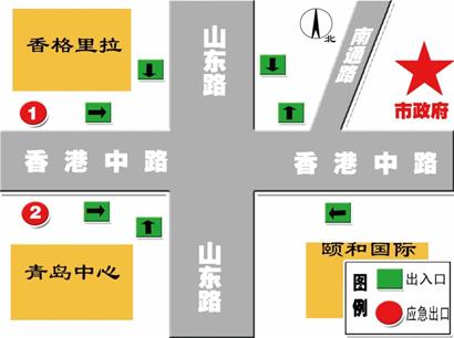 与其他车站不同,五四广场车站所处的位置堪称青岛的经济和政治核心地带。五四广场车站建成后,将在车站周围设置9个出入口,除2个应急出口外,7个都是乘客日常出入口。其中,在香格里拉酒店南侧和东侧各有一个出入口,在南通路和山东路中间有两个出入口,在颐和国际北侧的香港路边上有一个出入口,青岛中心北侧和东侧也分别有一个出入口。两个应急出口分别在山东路以西、香港中路的南北两侧。