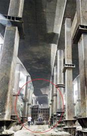 昨日下午,记者进入五四广场站20米深的地下,刚进地下,一根根柱子吸引了记者的注意。这些柱子从地面直接顶在上面的顶板上,有方柱和圆柱两种,每隔10多米就是一根。宋鹏杰介绍说:“盖挖法施工,我们一共设置了181个钢筋混凝土柱来做支撑。它们就是车站的根基。 ”