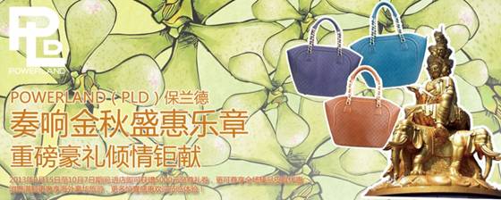 POWERLAND(PLD) 保兰德继承民族文化的艺术底蕴,让民族自主品牌走向世界,在国庆佳节期间,为您献上折扣优惠惊喜和豪华大礼,让您轻松体验 PLD 箱包的深刻魅力,打造您愉悦的购物之旅。
