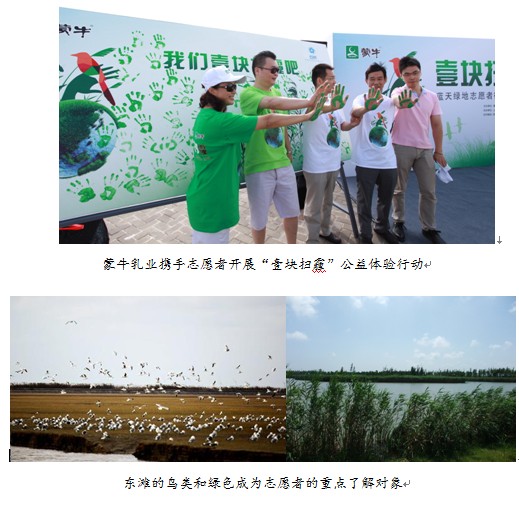 9月15日,一个秋高气爽的周末,崇明东滩鸟类国家级自然保护区。蒙牛乳业携手40多名全国公益志愿者来到这里,开展“壹块扫霾”公益体验行动,为保留绿色而身体力行。观绿意、赏水景、听鸟声、除鸟粪,在感受湿地独特魅力的同时,志愿者们也通过自己的点滴努力守护湿地的绿色。