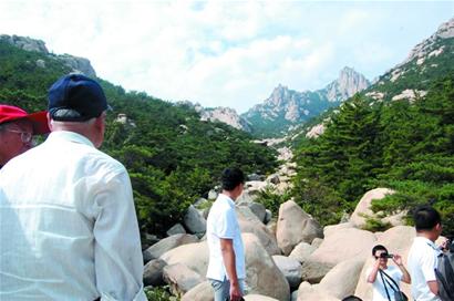 专家们首先来到崂山华严寺景区,进入景区不远,国家海洋局第一海洋研究所研究员徐兴永指着左上方的山脉介绍说:“山顶那些沟沟壑壑就是冰碛地貌,而且山上巨石造型处处可见,这就是冰川地貌的典型代表。”记者顺着他手指的方向望去,这些巨石组合成团,或堆或叠,或站或立,庞大浑圆,气势夺人。