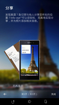 同时,还能将你拍过的照片自动录制成旅行线路,生成电子游记,并在关联个人微博帐号后,将游记一键上传到社交网站上,随时与朋友们分享探索的感悟和沿途的美景。通过Xperia Z1 L39h拍摄出的照片,加上符合你小心情的特殊效果,势必会让你的游记人气爆棚,带上Xperia Z1 L39h变身旅游达人吧!