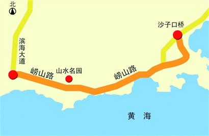 崂山路绿化景观改造范围西起滨海公路,东至沙子口桥,全长8公里,道路两侧设计宽度在5到20米不等,总绿化面积约18.5万平方米。整条崂山路的绿化将呈现出移步换景、四时不同的变化趣味。在近海处,为保证海天一色的观赏性,将选择高杆、通透性强的黑松等树种;在居民区一侧,绿化将采取密植树木,以降低噪音。