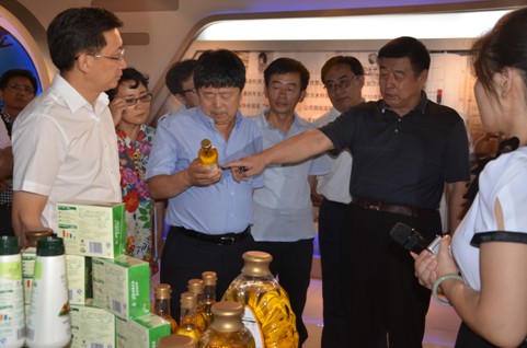 图为西王集团董事长王勇给大家介绍西王玉米油产品