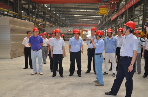 图为参观魏桥创业集团76万吨高精铝板带生产车间