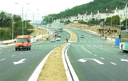 本报讯 昨日上午 9点,备受市民关注的崂山路改造工程全线双幅通车。作为直通崂山风景区的唯一主干线,在国庆“黄金周”前夕全线双幅通车,将给进出崂山景区的国内外游客提供便利。