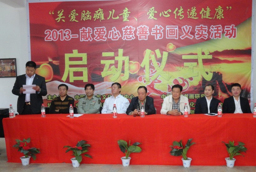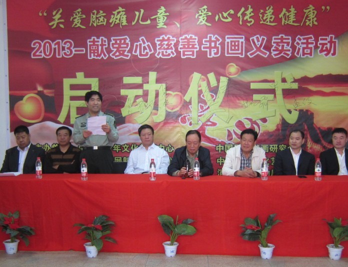 新中国成立64周年前夕,即2013年9月29日,意在“关爱脑瘫儿童、爱心传递健康”的“2013献爱心慈善书画义卖活动”之启动仪式,在河北省石家庄市隆重举行。