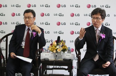 新浪手机讯 9月 23日,缺席中国手机市场半年多的LG在京举办发布会,发布安卓旗舰手机LG G2,售价4288元,发布会后新浪手机对LG电子全球手机事业总部副总裁张容硕和LG电子中国区总裁兼董事长慎文范进行了专访。