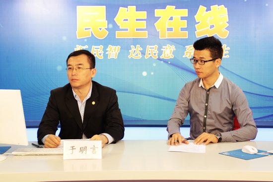 市经合办副主任于明言(左一)与网民交流 (周琦 摄)