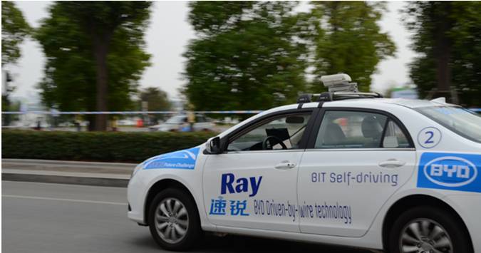 2013年11月2日至4日,第五届“中国智能车未来挑战赛”在江苏常熟顺利举行。来自11家单位的18辆无人驾驶车,在城郊和城市道路上进行角逐。比亚迪速锐作为唯一款带遥控驾驶技术的车型参赛,并在丰田普拉多、别克昂克雷等众多参赛车型中脱颖而出,荣获总冠军。