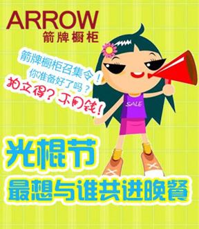 我们都知道,爱是藏不住的,闭上嘴巴,眼睛也会说出来,既然如此,还等什么?把日思夜想的TA约出来吧。担心不知道该怎样去表达才不显唐突?不用愁,让箭牌橱柜来帮你吧。箭牌橱柜作为中国橱柜十大品牌,始终全方位服务着广大的消费者。11月7-11日,关注新浪微博@箭牌橱柜arrowkitchen 参与光棍节专题活动勇敢的发布你爱的宣言,说出光棍节最想和谁共进晚餐并@上他。当你勇敢的作出邀请的时候,箭牌橱柜也收到了你的这份情意,作为鼓励,你将有机会获得拍立得相机一台哦。