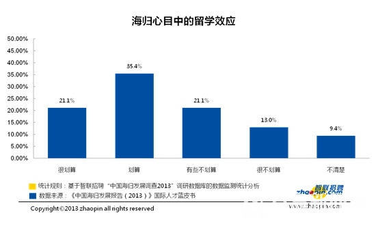 对此,智联招聘首席人力资源专家郝建建议海归:作为职场新人,选择一个好的发展平台和职业规划要远比一份高收入的OFFER重要的多。尽管多数海归需要5年收回成本,但在正确的职业规划下,5年后的职业前景将会是相当可观。