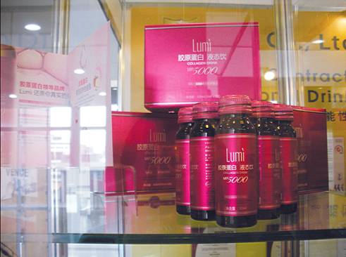 图为亚太食品安全国际会议现场,参展的Lumi胶原蛋白产品。