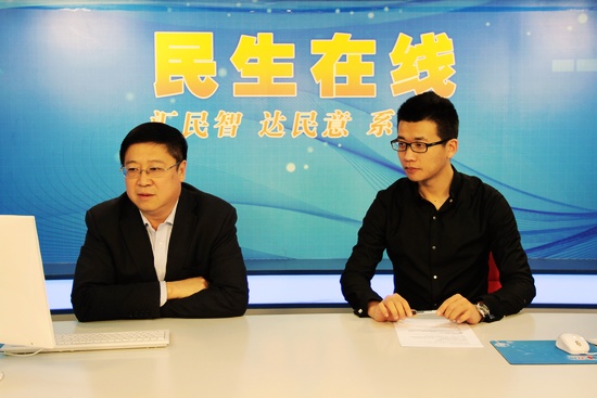 青岛市农业委员会副主任张启光(左一)与网民交流 (周琦 摄)