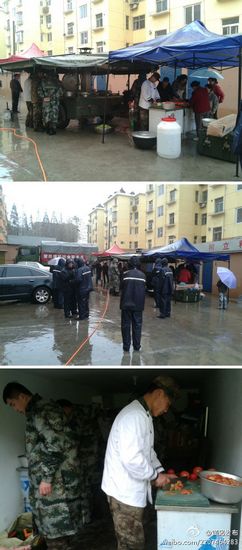 青岛新闻网11月24日讯 11月24日,青岛下起了中雨,给黄岛输油管道爆炸现场的救援增添了不小的难度。今天中午,为了保障受灾群众的基本生活,驻黄岛区部队的官兵冒雨设立了“爱民便民饮食服务点”,为群众提供热腾腾的饭菜。在卧鹏小区,青岛警备区炊事班也正在为群众发放午餐,居民在雨中有序的排队领取,场面秩序井然,温馨感人。(青岛新闻网记者)