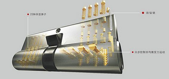 在先期投入锁具市场时,曼申便凭借着自身卓越的研发创新能力推出了中国第一款超B级锁芯,并藉此展开了逐步跨入安防行业并追随市场的需求调整产品线的发展策略。如今,超B 级锁芯已经升级为超B级报警锁芯。超B级报警锁在锁芯上加装了一个报警锁盒,此锁盒安装在门的背后,在具备防技术、暴力开启的超强防盗功能的同时,实现了适时报警功能,为主人入户安全提供了智能化的保证。其人性化的设防、撤防也不用改变日常门锁的使用习惯。中国第一款超B级报警锁的出现,不仅意味着超B级锁进入到智能报警时代,同时也意味着其实现了和未来的智能家居的生活无线连接。