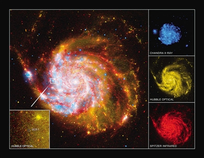 X射线极亮源M101 ULX-1位于漩涡星系M101的一个悬臂上,M101距离地球2200万光年。